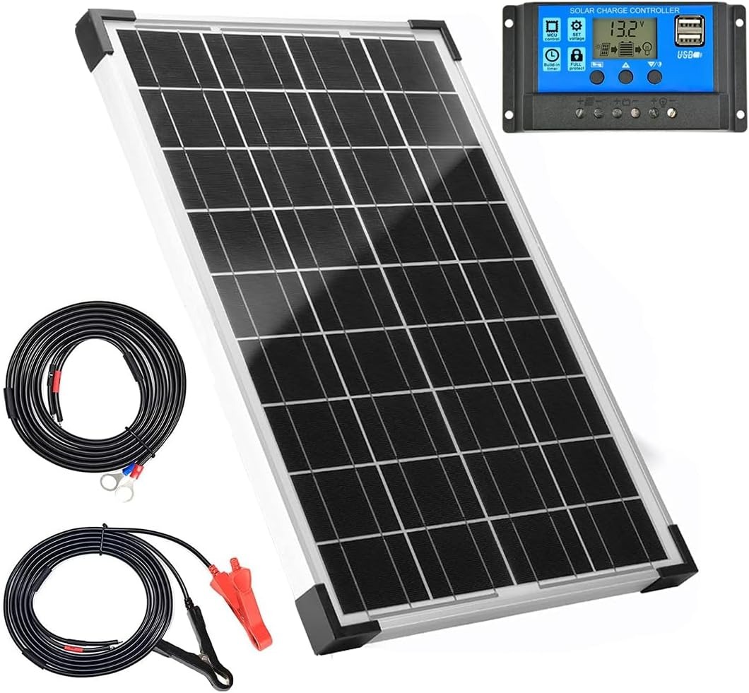 Power: 20W for small device charging. Controller: 10A PWM prevents battery overcharging. Design: Compact 42 x 28 cm size.